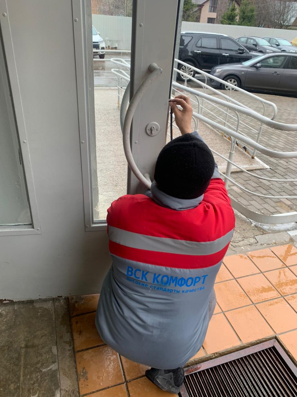 По адресу: ул.Молодёжная, дом 61, этаж 20 выполнены работы по замене неисправной ручки входной двери в жилой блок.